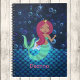 Skriv ditt eller ditt barns namn eller något annat meddelande i avsnittet Personlig. Den här vackra rödhåriga sjöjungfrun med grönt-skalor går runt i ett vackert mononbelyst hav. Sjöjungfruarna är så fascinerande halvmänskliga havslevande varelser, delfiskar och delar av människor. Medan vissa skapar olycka för sjöresenärer, är den här vismisk och vänlig eftersom hon simmor runt i ett bubbelhav.