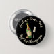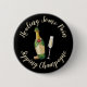 Öppna mousserande vin flaska med fyllt glas och ett lustigt ordspråk. Anpassningsbarnas bakgrund färg. Anpassningsbar.