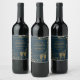 Bubblar i Vin, blått och Guld Bröllop Vinflaska Etikett