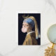 Vintage av popkonst blandas om en flicka med Pearl Earring som blåser en rosa bubbelgummi