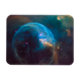 Bubble Nebula, NGC 7635. Uppehållsstjärnan som bildar denna nebuli är 45 gånger så stor som vår sol. Gasen på stjärnan får så hett att den försvinner ut i rymden som en stellär vind flytta vid mer än 4 miljoner miles i timmen. Detta utflöde sveper upp kallet, mellangasen framför det och bildar bubblans yttre kant. Yta i bubblans snäcka växer utåt, och strömmar in i tät kall på ena sidan av bubblan. Den här asymmetrin får stjärnan att se dramatiskt ut från bubblan, med dess placering i klockan 10. Täta pelare av vätegas i coola som lats med stoft visas på den övre lämnat delen.