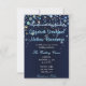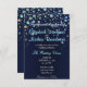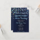 Bubbelstjärnor med en mörk blått bröllopsinbjudan.