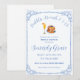 Elegant “Bubbles, Brunch & I Do” bridal shower invitation featuring a blue vintage border, watercolor mimosa and waffle stack, and classic script fonts. Personalize with your shower details for a chic brunch celebration at your favorite cafe, restaurant, or at home.