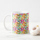 Mugg har en geometrisk utformning av tre kretsar som är kapslade och spridda genom hela konstruktionen i flera färg.