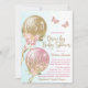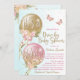 Baby Covid-babyduschinbjudan med söt rosa och guld-ballonger med blommor, fjärilar och bögar på en tealblått och vitt bakgrund. Den här söta inbjudan till rosa, guld och tealblått per babydusch är lätt att anpassa med din händelseinformation.