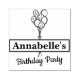 Firar en födelsedagsfest som använder det här söta frimärke för dina inbjudningar! Det har flera ballonger som är bundna till en buggstext, namn "Annabelles" text i mitten och "Födelsedagsfest"-mallskript i grund. Två mallar skapades åt dig.