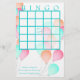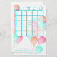 Bingokort för babydusch för att uppfylla inbjudan med ballonger för söt orange, rosa och färgad.
