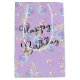 Abstrakt: Tvåpbubbla mönster på en lavender lila med Grattis på födelsedagen. Bakgrunden till färg kan ändras. Texten kan redigeras.