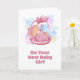 Skicka dina glatta grattisar när du föder en nyfödd bebis-flicka med det här hälsningskortet med en söt nalle som sover i en rosa-sling medan du flyter i himlar med ballonger.