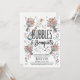 'Bubblor & Buketter' inbjudan, perfekt för en överraskningsfest eller en rolig prosecco & kronbladskväll med blomsterarrangemang. Inbjudan är illustrerad med en fantasifull champagneflaska som poppar med brusande kolsyra, omgiven av vackra blomsterbuketter och lekfulla bubblor. Den handritade estetiken ger en unik och konstnärlig touch som fångar stämningen för din firande tillställning.