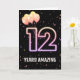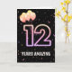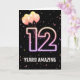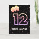 Party-ballonger och konetti mot svart bakgrund med nyon nummer 12 för en 12:e-födelsedag.