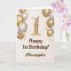 Ballonger och konfetti-födelsedagskort i Guld 1:a födelsedagen. Om du vill göra ytterligare anpassningar klickar du på knappen "Anpassa" och användor verktyg som är utformat för att ändra mallen.