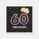 Party-ballonger och konfetti mot svart bakgrund med neon nummer 60 för en 60:e födelsedagsfest. Du kan redigera eller radera "Åren Fantastisk".