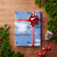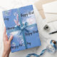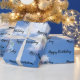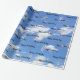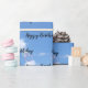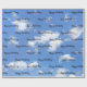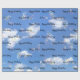 Iridescent tvålbubbla mönster på blå himmel med vita fluffmoln för födelsedagspresent. Text kan redigeras.