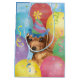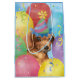 Grattis på födelsedagen hälsning med denna söta design som har en jämn, party-hatt-beklädd Smooth Dachshund-valp omgiven av färgstarka ballonger, konfekt och strömmande medel.