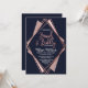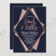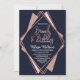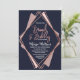 Elegant, chic och modern med en reflexform, utskrift av den geometriska diamantformen ro-guld på marinblått, mauve och rosa, diamanturnering, Bubly- och Brunch-inbjudningar. Denna klassiska och sofistikerade utformning är perfekt för alla snyggtar och trendig, inklusive bröllop och dagligt tillfälle. Anpassa med ditt eget meddelande på framsidan och en anpassad inledande monogram på baksidan. All fotoutskriftsdesign.