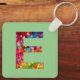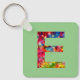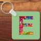 Buchstabe "E" in dekorativem Stil mit Pflanzen in leuchtenden, bunten Farben. Schlüsselanhänger ist geeignet für Namen Emilia, Emma, Ella, Elias, Evelyn, Elizabeth, Eleanor, Emily.