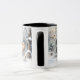 Mugg har en söt vattenfärgsskrapa runt scenen med en stor buck hjort i en vinterskog. Snöflingor faller försiktigt runt honom. Ditt namn eller annan text står i grått-blått i mitten av grund. Söt till julsäsongen och hela vintern också.