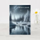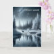 En serenvinter-natt visas med en hjort som står vid en reflekterande flod omgiven av snö-täckt träd för allmän sympati. Text kan redigeras.