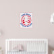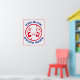 Det stannar här. Rödfärgad och blå design. Två händer höll upp: "Blocket stannar här". "Lita på mig" tema med en retrokänsla.