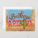 Buckeye Arizona neo vintage resor poster väggkonst i tecknad retro stil med öknen, en kaktus och röd sten-omgivning.