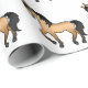 Desteis ursprungliga tecknad illustrerar en söt bockskin-trotting-häst färg som mönster.