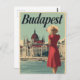Detta romantiska vykort för vintage visar hur stor del av Budapests parlament som bygger, med en snyggt kvinna i en blomstrande röd klänning på 1950-talet som står i förgrunden. Vid floden Donau har scenen slagits ut i mjuka, nostalgiska tonfall som framkallar charmen från det europeiska resandet under det kommande århundradet. En perfekt biet för älskare av vintage mode, arkitektur och klassisk vykortskonst.