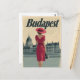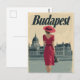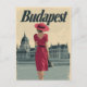 Detta romantiska vykort för vintage visar hur stor del av Budapests parlament som bygger, med en snyggt kvinna i en blomstrande röd klänning på 1950-talet som står i förgrunden. Vid floden Donau har scenen slagits ut i mjuka, nostalgiska tonfall som framkallar charmen från det europeiska resandet under det kommande århundradet. En perfekt biet för älskare av vintage mode, arkitektur och klassisk vykortskonst.