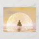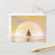 Liten BUDHA framför stora måne med vackert rosa morgonljus