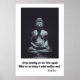 Ett gråskalefoto fångar en serene Buddha-staty som sitter i en meditativ attityd mot mörkens bakgrund. Statyn är utrustad med invecklade detaljer, inklusive ett serenuttryck på ansikte, blomningsband och en traditionell headdress. Belysningen kastar subtila skuggor på statyn, belyser dess form och skapar en känsla av lugn.