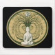 Denna underbara buddistiska design visar Siddhartha Gautama sitta under Bodhien var han nådde fram till insikt och blev Buddhaen. Vitt formar garvar ovalen i grönt och färger med ett Om-symbol upptill av träd. Original- och fridsamma Buddha skjortor och gåvor!