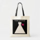 I den här budens mamma-väskan finns ord "Budens mamma" ovanför en modern möhippa och en rosa bukett av ro på en svart bakgrund. Ett underbart sätt att tacka mor. Copyright Kathy Henis