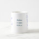 Personlig Budens mamma mugg med blommigt brev-design. Handskriftsbokstäverna har ett dammigt blått färg-tema och dekoreras med vattenfärgade blommor. Utformningen är ett redo för dig att anpassa med både brud- och rummets namn och bröllop-datum. En underbar keepy och perfekt för favörer, din möhippa, bachelorette helg, bröllop repetitioner och den stora dagen. Det finns samordnande muggar för briderna och andra medlemmar i brudens sida.