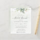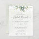 Snygg brunch-inbjudan till möhippa med vattenfärgad eukalyptus och guld löv.