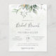 Snygg brunch-inbjudan till möhippa med vattenfärgad eukalyptus och guld löv.