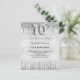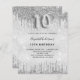 En modern, snyggt och glamorös inbjudan till en flickas tionde födelsedagsfest. En faux silver-tittar bakgrund, dekorerad med glitter-damm. Anpassa och lägg till ditt namn och information om party. Nummer 10 skrivs med ett stil-skript med ballong.