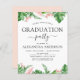 Budgetklass för 2022 Tropical Handflatan Blommigt Flowers Watercolor Studentfest Invations - omfattar vacker och elegant manustypografi med moderna botaniska blommor och tropisk hawaiisk grey för att speciella Student ska klassas rosa.