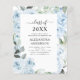 Budgeten för 2023 för Dusty Blue Blommigt Ro och Eucalyptus botanical Greenery Watercolor Vår eller Summer Class från 2022 Studentfest Invations - innehåller vacker och elegant manustypografi med moderna botaniska blommor och grönt för att speciella Student ska vara firande för en högskola eller högskola Grad.