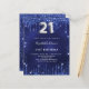 En modern, snyggt och glamorös inbjudan till 21-årsdagen party. En marin blå bakgrund, dekorerad med faux glitter damm. Den blå färg är ojämn. Anpassa och lägg till ditt namn och information om party. Nummer 21 skrivs med ett stil-teckensnitt, skript, silver-färgad.