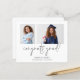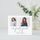 Ett prisvärt BUDGET-alternativ i en mindre storlek 4,5 x 5,6” semi-gloss 110lbs vikt, som har liknande tjocklek som ett vykort (kan dock inte användas som vykort). OBS! Det finns EN per ark. Budget 2 Foto manus-examensmeddelande. Byt helt enkelt ut de två exempelbilderna mot dina egna och anpassa texten efter behov. Grattis Grad finns i ett stilrent manus.