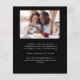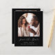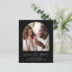 Den här enkla, minimalistiska Spara datumkortet har en boho-fotobåge ovanför orden "Spara datum" i ett vitt handskriftsskript i elegant, följt av parets namn, bröllop datum och stad i sans serif-teckensnitt på svart bakgrund. Lägg till ett andra foto med vågrät och ett mer detaljerat meddelande med ytterligare information om det omvända.