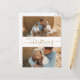 Modern, minimalistisk, Elegant-skript 2 Photo Collage jul-vykort för Helgdag i guld och vitt. Den här snygga, tydliga, minimalistiska, två (2) familjekortmallen för fotokort för helgdag har ett söt-rutnätsfotokollage och säger "God jul"! Textskriptet "Jul" i hälsning är skrivet i en handskrift som snabbt byts ut mot svan. På baksidan ett foto och ditt meddelande. Hälsningskort för söt till din familj och dina vänner på Winter-Julhelgen.