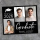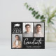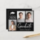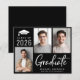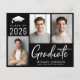Modern svart budgetvänlig examens inbjudan med 3 bilder och "Graduate" i en fet modern vit skrift. Lägg till examenens namn, examensår och skola eller universitet i enkel vit typografi.