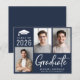 Modern mörk-marinblått budgetvänligt studenten-meddelande med 3 foton och "Student" i ett fet contemporary vitt skript. Lägg till namn, klassår och skola eller universiteten i enkel vit typografi.