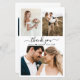 Budget, Elegant, Modern, Bröllop 3 Photo Collage Tack Script personlig till ett överkomligt pris för THIN-kort med låg budget. Minimalistiskt tack för bröllop är att du har en kortmall med (3) tre foto på framsidan och ett foto på baksidan. ***NOTERA! *** BUDGETEN PAPPER/FLYER ÄR TUNG. *** UPPGRADERA PAPPRA FÖR EN THICKER-PAPPER. *** Innehåller en "Tack"-text i ett roamingskriptteckensnitt med snabba bokstäver med dekortecken i svart färg på vit bakgrund. Anpassa namn och tack för budskapet. Om du föredrar att skicka anteckningen tar du bara bort exempeltexten för att få mer utrymme. Ett litet hjärta mellan namn. Om du behöver hjälp eller matcha objekt kontaktar du designer!