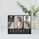 Ett budgetvänligt, modernt, svart studenten-meddelande och en partiinbjudan med 4 bild fotokollage, "Student" skriven i stort vitt brev och hans eller hennes klassår, namn och skola eller universiteten i vanlig vit typografi. Lägg till informationen om party på baksidan.