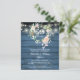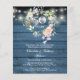 Med en delikat akvarell blomsterrosengirlang och fina strängljus på en blå träpanelbakgrund, kan denna chic rustika 50-års bröllopsjubileums inbjudan anpassas med din speciella jubileumsinformation. Baksidan visar ditt speciella foto. Designad av Thisisnotme