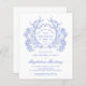 En vapensköld för blå blommigt i elegantens Fransk tar vintagen i mitten på den här inbjudan om att födelsedag inte ska hållas. Ornat, formellt och mycket feminin kommer att få dam att känna sig mycket speciellt. Det finns samordning av party.