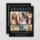 Elegantens budgetvänliga utlysning av svart studenten för att fira student med "STUDENT" överst i stor vit typografi, en sju fotokollage och hans eller hennes namn, klassår och skola i modern vit typografi. Lägg till ytterligare ett foto och ett anpassningsbar på baksidan.
