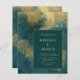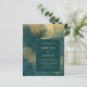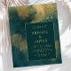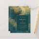 Den här eleganten har den moody bröllopsinbjudan en modern abstrakt-teal och guld vattenfärgbakgrund. Anpassa guld-färgad-texten i snyggt typsnitt på en mörk-rektangel. Den abstrakta utformningen upprepas på kortets baksida.